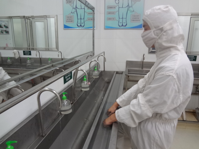 工場入室前に消毒を厳格に